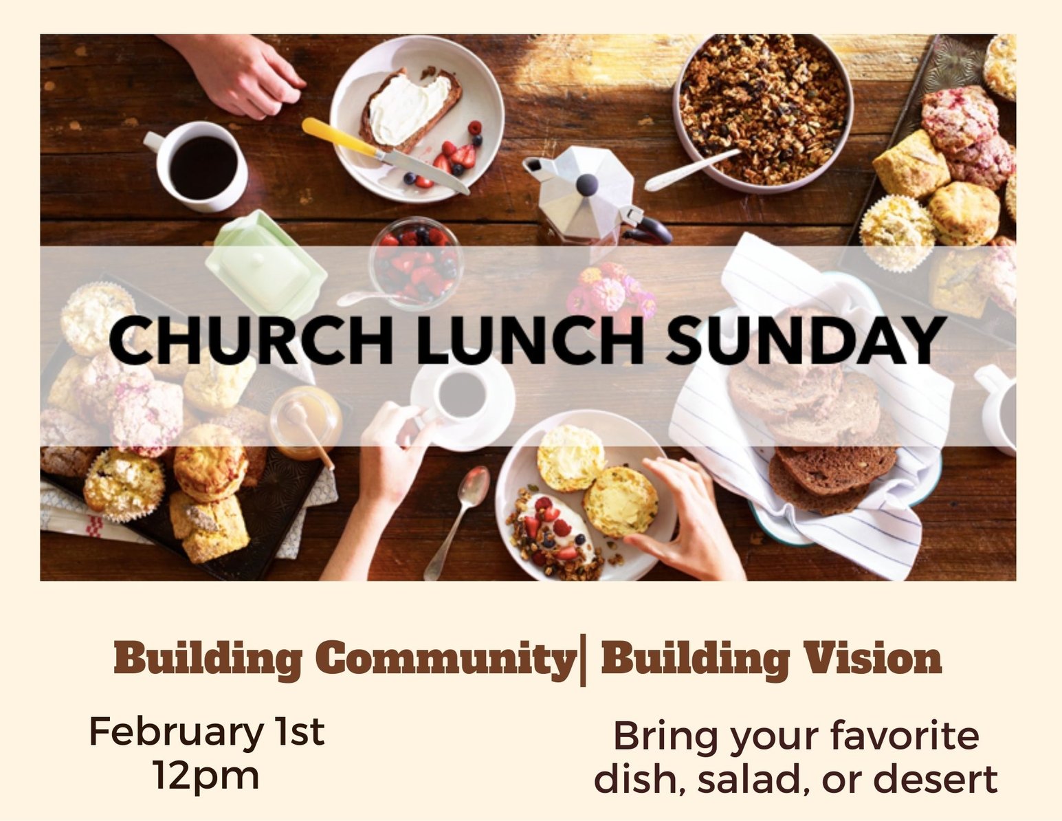 We will meet on Sunday, February 1st @ 12:00 pm. Bring your favorite dish, salad or dessert. Your appetite will be helpful as well!